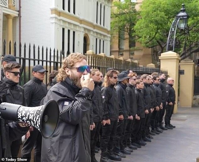 Davis estava entre os cerca de 60 manifestantes vestidos de preto que receberam permissão para se reunir em frente ao Parlamento de NSW em 8 de novembro e entoar slogans da Juventude Hitlerista.