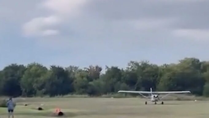 Uma pequena aeronave nas filmagens capturadas por Joshua Bullie mostra o momento no momento.