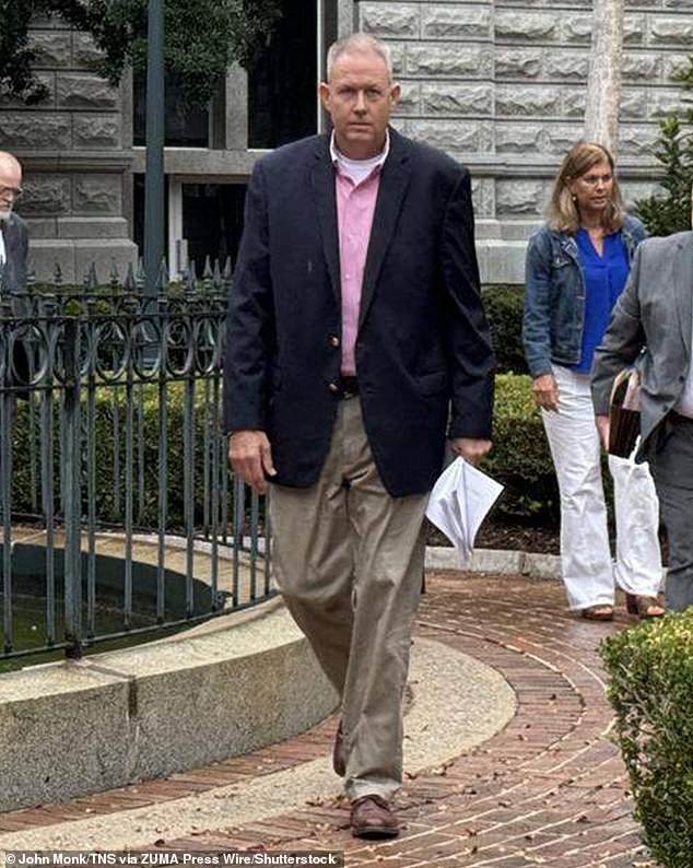 Lafitte, que aparece caminhando para o tribunal, realizou pelo menos nove transações separadas em benefício de Murdaugh, sabendo muito bem que o dinheiro pertencia aos clientes.