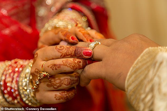 Uma cerimônia de casamento asiática onde os casamentos de parentes próximos são particularmente comuns na comunidade