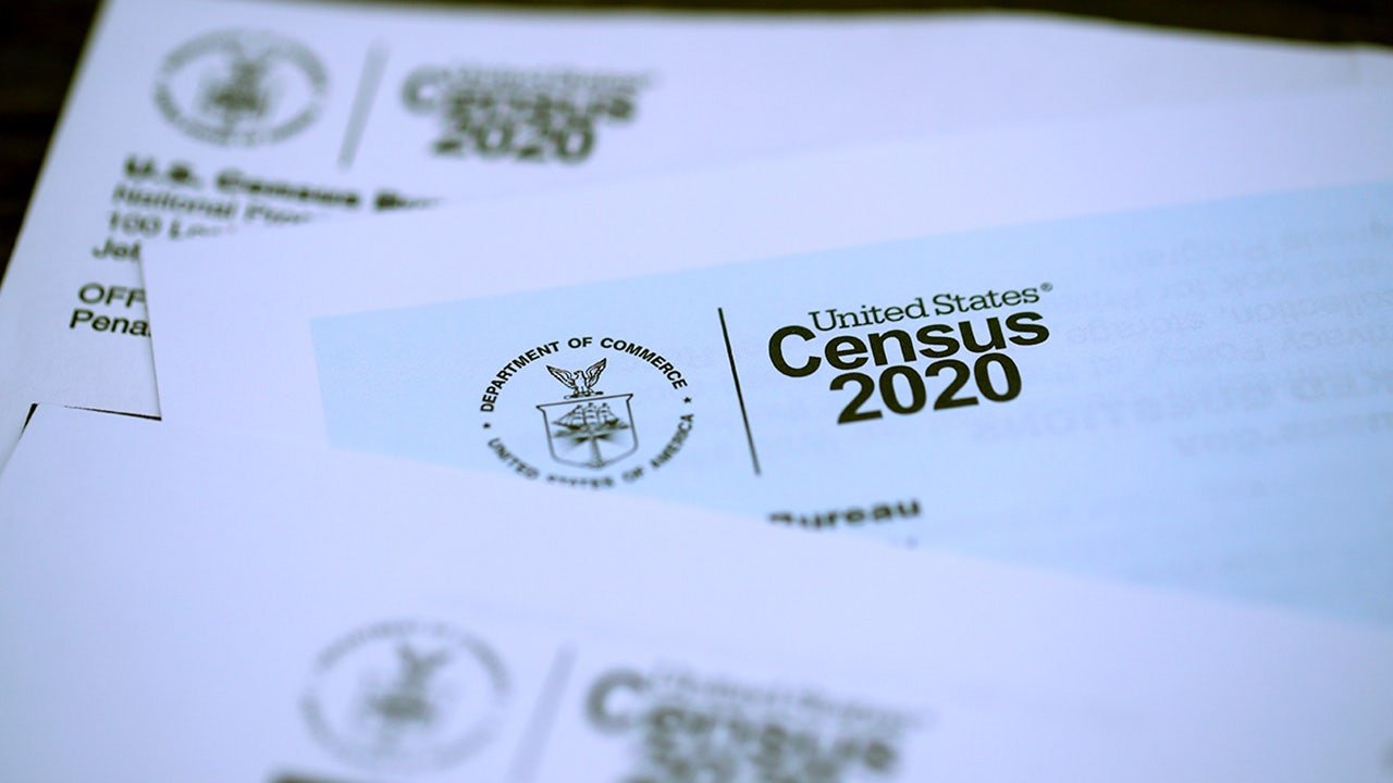 O logotipo do Censo dos EUA aparece nos materiais do censo recebidos pelo correio com um convite para preencher as informações do censo online em 19 de março de 2020, em San Anselmo, Califórnia. (Justin Sullivan/Imagens Getty)