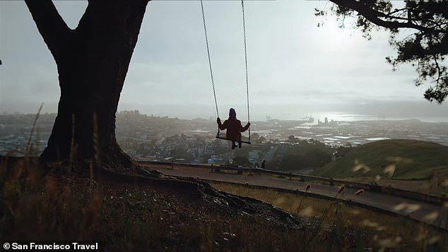 Cerca de dez segundos depois de um vídeo lançado recentemente promovendo o turismo em São Francisco, o balanço de corda de Bernal Heights aparece