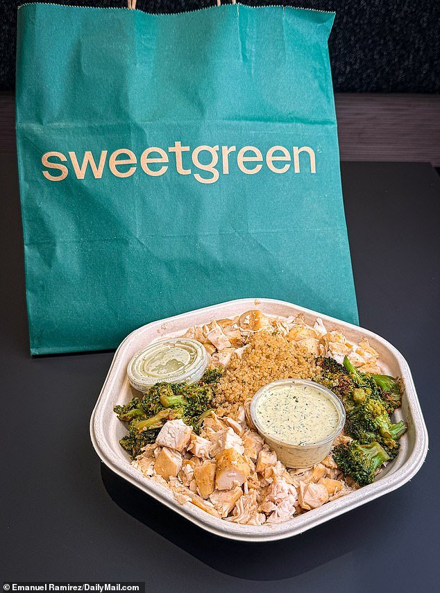 Um editor disse: ‘A tigela tinha um gosto bom e sou definitivamente um fã do molho, mas parece que Sweetgreen poderia ter economizado alguns gramas de proteína adicionando mais de três ingredientes. Onde estão meus tomates, pepinos e cenouras?’