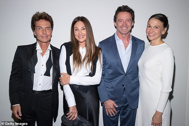 O ator, 57, que supostamente está Está em negociações de paz com sua ex-esposa DeborraLee Furness, 69, abraçou com orgulho Foster, 50, durante o evento.