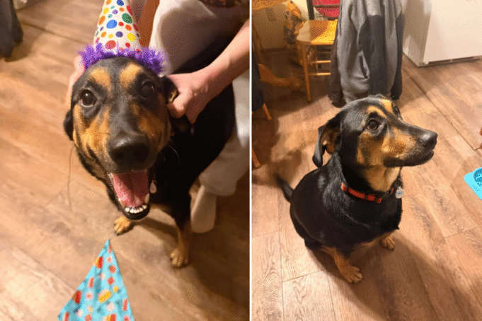 Cheri, 22, de Minnesota, que vai com vocêCobaintrain no Reddit, onde ele compartilhou fotos da celebração de Jinx que aconteceu no dia 3 de dezembro. As fotos parecem alegres enquanto o cão mestiço de resgate sorri com um chapéu de festa colorido, com a legenda dizendo que ele está “sendo sacrificado”.