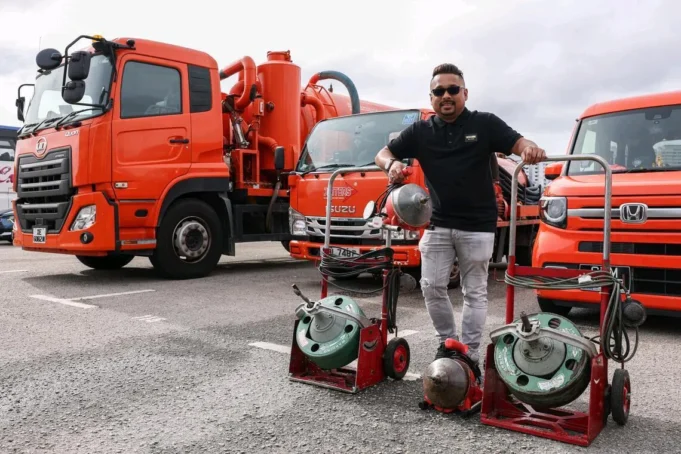 Xeque Nifael Naseemuddin (à direita) e parte da equipe Jetters Inc.