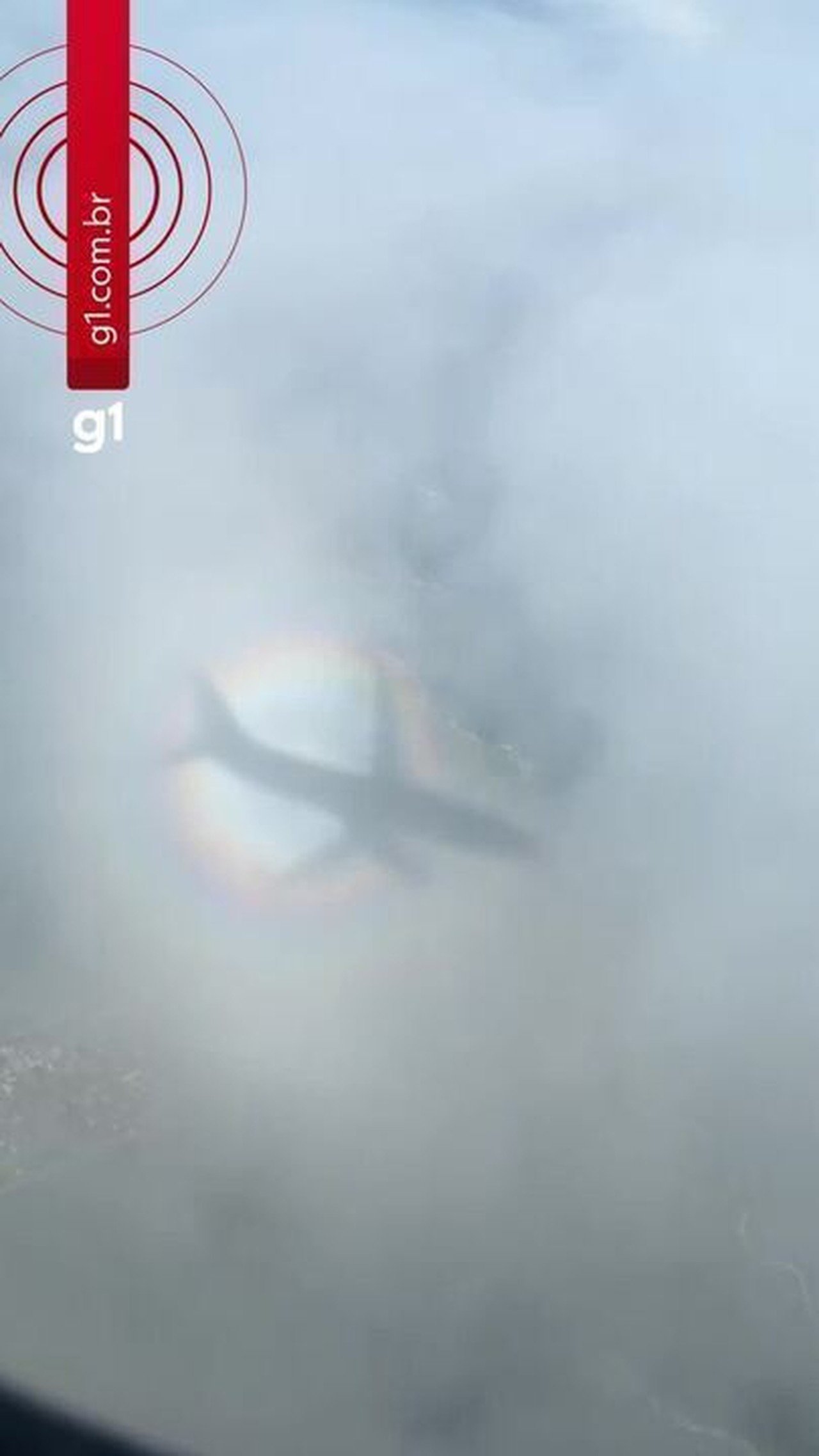 Ele explica que a “glória” é criada quando o avião tem o sol de um lado e, do outro, nuvens com gotículas de água bem onde é projetada a sombra do avião. A luz solar atinge essas gotículas, dispersando-as em cores diferentes Pode ser visto por qualquer pessoa entre o sol e as nuvens, neste caso, os passageiros.