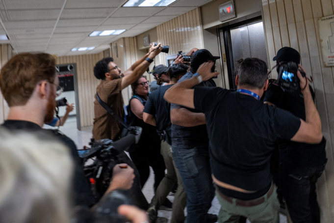 No incidente de terça -feira, as testemunhas da Reuters disseram que jornalistas da agência de notícias locais Amnewyork perseguiram um oficial de gelo no elevador depois que a mulher foi presa.