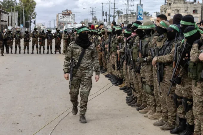 Imagens da Reuters mostraram dezenas de combatentes do Hamas alinhados em um hospital no sul de Gaza, alguns usando dragonas que os identificavam como parte de uma “força sombra” de elite encarregada de proteger os reféns.