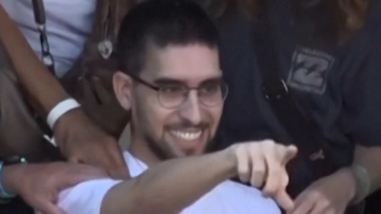 O israelense livre Jymmy Matan abraça a mãe de Jangoukar