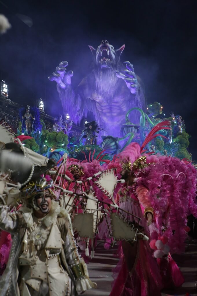 Um gigante e ágil Lobisomem, 20 metros de alturaNeste domingo (15) chama a atenção o desfile da Imperatriz. Carro Escolar de Carnaval Leandro VieiraInspirada na música “O Veera”, cantora remete a versos de imortalidade Ney Matogrossoenredo escolar (“Vire-se, vire um homem, vire-se, vire-se/vire-se, torne-se um lobisomem.”)