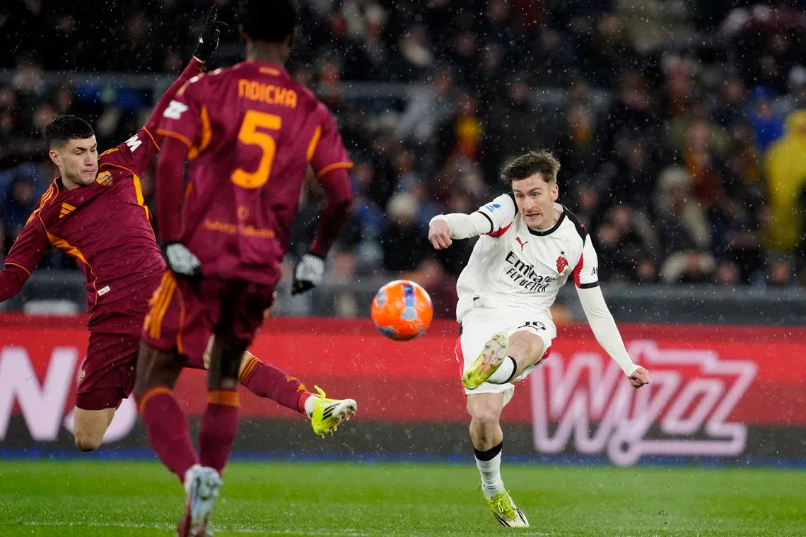 ROMA, 25 de janeiro – O AC Milan empatou em 1 x 1 com a AS Roma em um jogo chuvoso na capital no domingo, e suas esperanças de título sofreram um grande golpe, deixando-os cinco pontos atrás do Inter de Milão no topo da Série A.