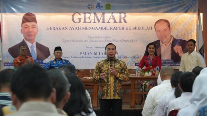 Este movimento foi observado durante a coleta de boletins no SDN Pondok Bambu 11 e SMAN 61 Jacarta na sexta-feira, 19 de dezembro de 2025. Os pais vieram à escola para coletar os boletins de seus filhos. Este movimento incentiva o envolvimento do pai na educação formal dos filhos.