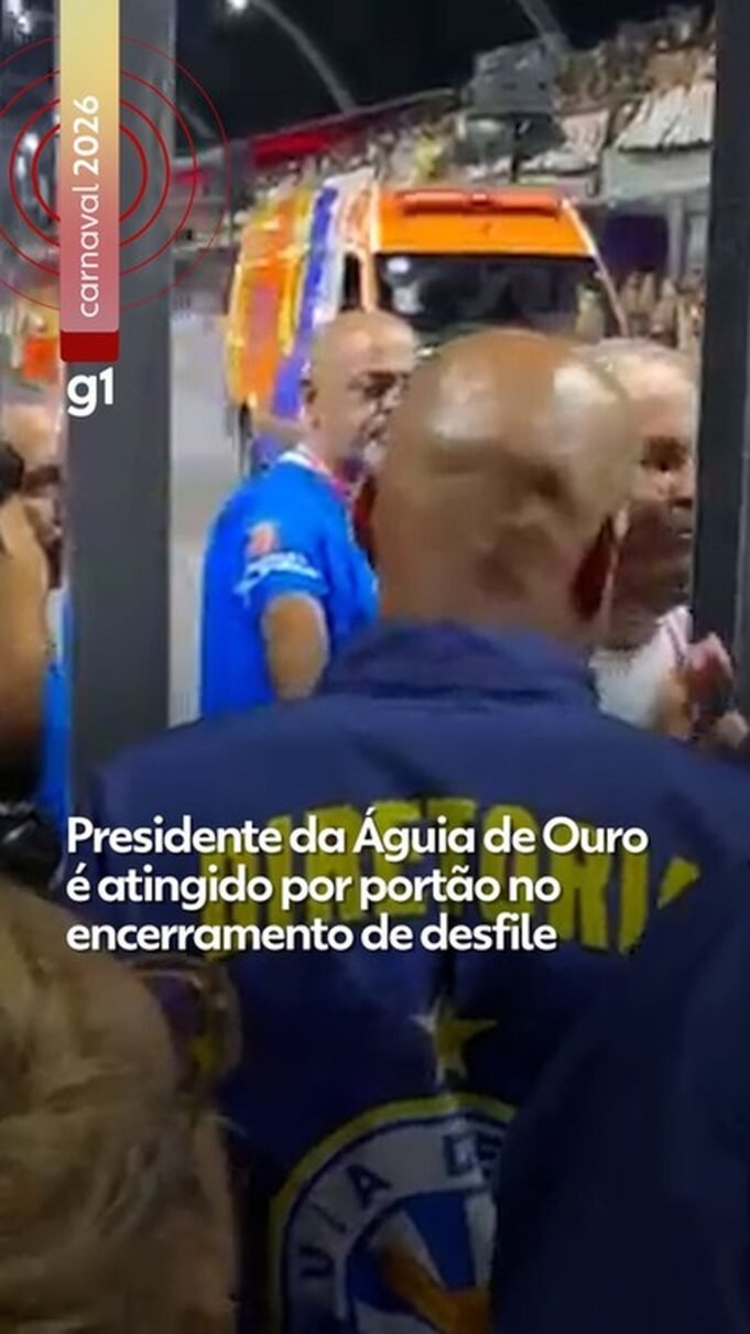 No final do desfile, o presidente da Água de Oro foi atingido pelo portão do Anhembi O presidente da Águia de Oro, Sidney Cariulo Antonio, ficou levemente ferido na noite de sábado (14), após o desfile da escola atingir o portão do Anhembi no final do desfile. A confusão e as discussões surgiram quando os seguranças se dispersaram depois que Aguaya fechou o portão presidencial. Os seguranças disseram que eram as regras e que o presidente estava irritado com o seu rigor. Ele contou à TV Globo que o golpe o deixou ferido. Antonio tinha uma marca vermelha na testa. Representantes da Liga-SP conversaram com o presidente da Águia. Confusão quando o Portão do Anhembi é fechado após reprodução do Desfile da Águia Dourada