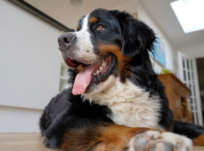 A adorável filmagem da câmera para animais de estimação mostra que o proprietário de qualquer Bernsdudle está fazendo o que está fazendo quando o proprietário está trabalhando online.