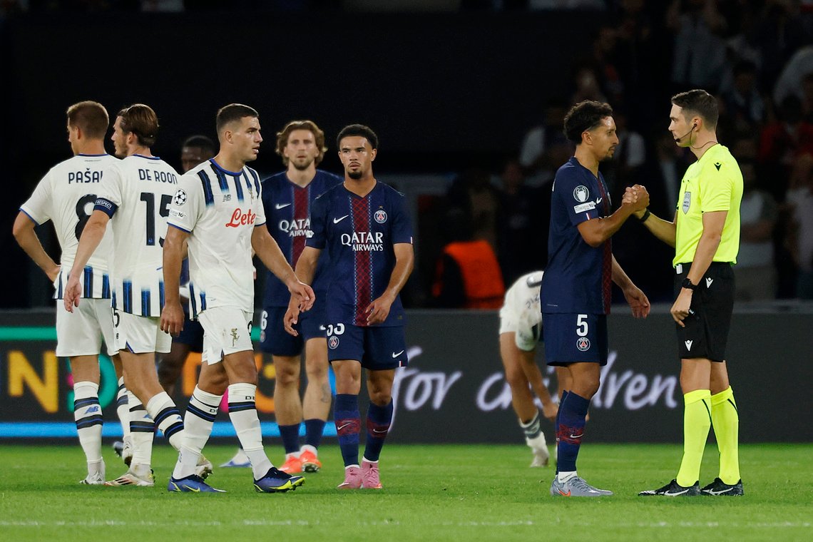 Marquinos marcou nos três primeiros minutos e o PSG seguiu com gols para Khvicha Kvaratskhelia, Nuno Mendes e Gonncalo Ramos, mostrando um jogo de fluido com a alta imprensa que se tornou uma marca registrada do jogo.