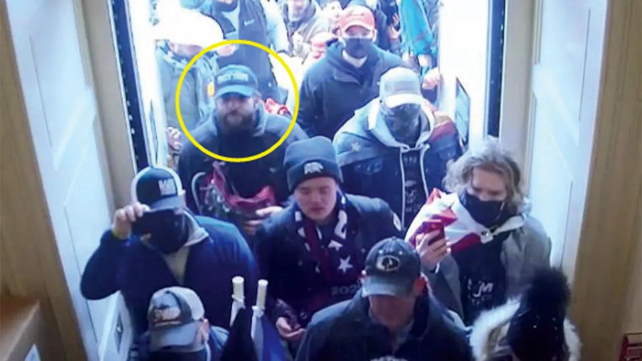 Taylor Taranto, mostrado aqui em 6 de janeiro de 2021, circulado em amarelo, foi condenado em um julgamento no início deste ano. (Judiciário)