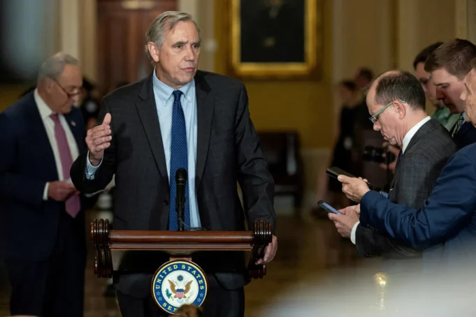 WASHINGTON – O senador democrata do Oregon, Jeff Merkley, na quarta-feira, o 22º dia da paralisação do governo, mais de meio dia depois de lançar uma maratona de discurso se opondo às políticas do presidente republicano Donald Trump.