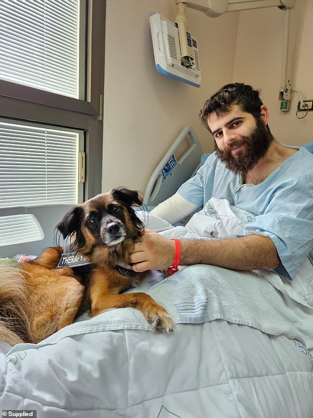 Yov creditou o cão de terapia chamado Teddy para ajudá -lo a se recuperar, o que ele recebeu durante sua recuperação.