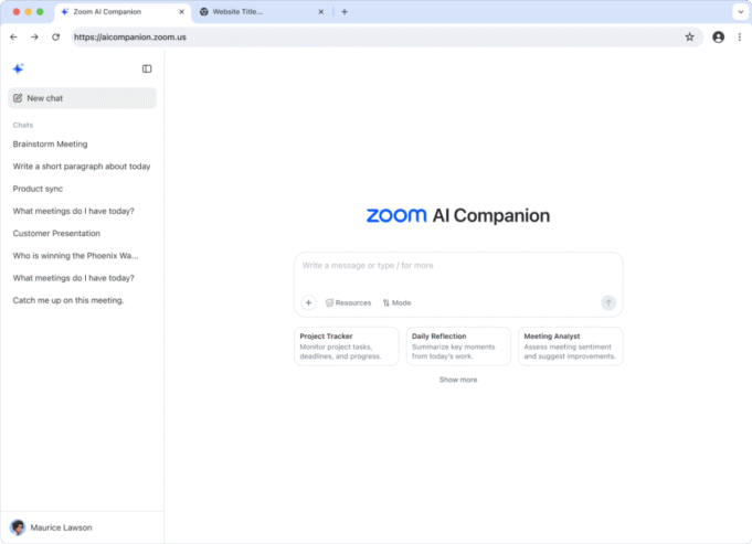 Além disso, o Zoom lança uma interface da web atualizada para mostrar os companheiros de IA com mais destaque, adicionando recursos movidos a IA, como um rascunho de assistente de redação e recursos de pesquisa profunda.