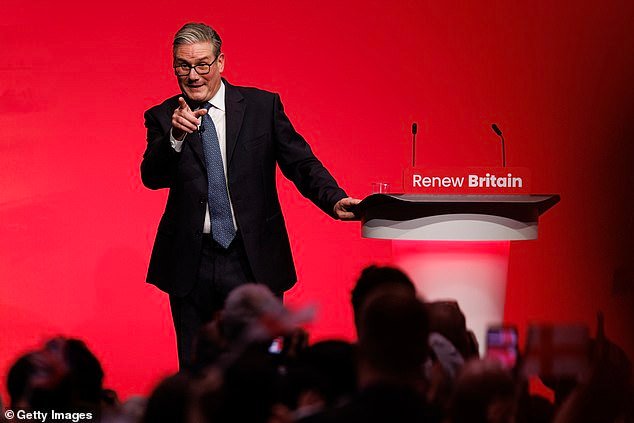 No discurso de sua conferência, Sir Keir descreveu Faraj como o ‘inimigo da renovação nacional’, dizendo que suas políticas de imigração destruiriam as comunidades.