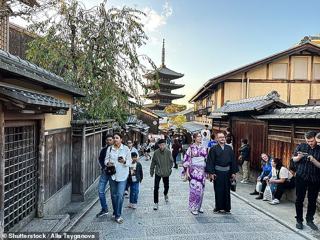 Os australianos que planejam uma visita à cidade japonesa de Kyoto serão forçados a pagar uma taxa turística aumentada a partir de março de 2026 (na foto estão turistas em uma das principais ruas de Kyoto)