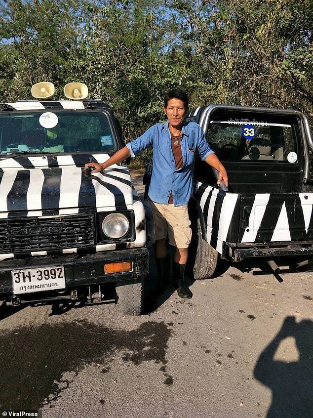 Quando ele saiu de seu jipe no recinto aberto no mundo do safari em Bangkok, em Bangcoc, por volta das 11 horas da manhã, os animais insistiram no trabalhador.