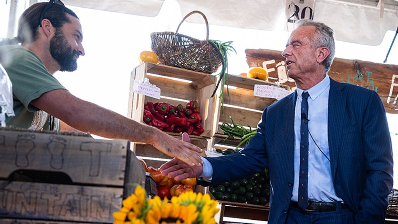 O secretário do HHS, Robert F. Kennedy Jr., e o secretário do USDA, Brook Rollins, à direita, conversaram com membros da fazenda da montanha, na segunda -feira, 4 de agosto de 2025, o grande revendedor de mercado farmáticos americanos inaugurais do National Mall. (Tom Williams/Secure-Roll Call, Inqu através da imagem Getty)