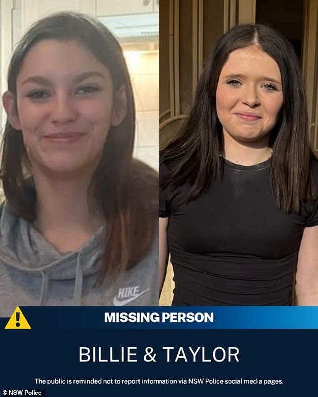 Pais preocupados de duas adolescentes pediram ajuda do público para encontrar suas filhas desaparecidas SydneyPara o oeste.