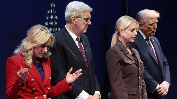 A conselheira do Gabinete de Fé da Casa Branca, Paula White, à esquerda, condenou o incidente em Minnesota. (SAUL LOEB/AFP via Getty Images)
