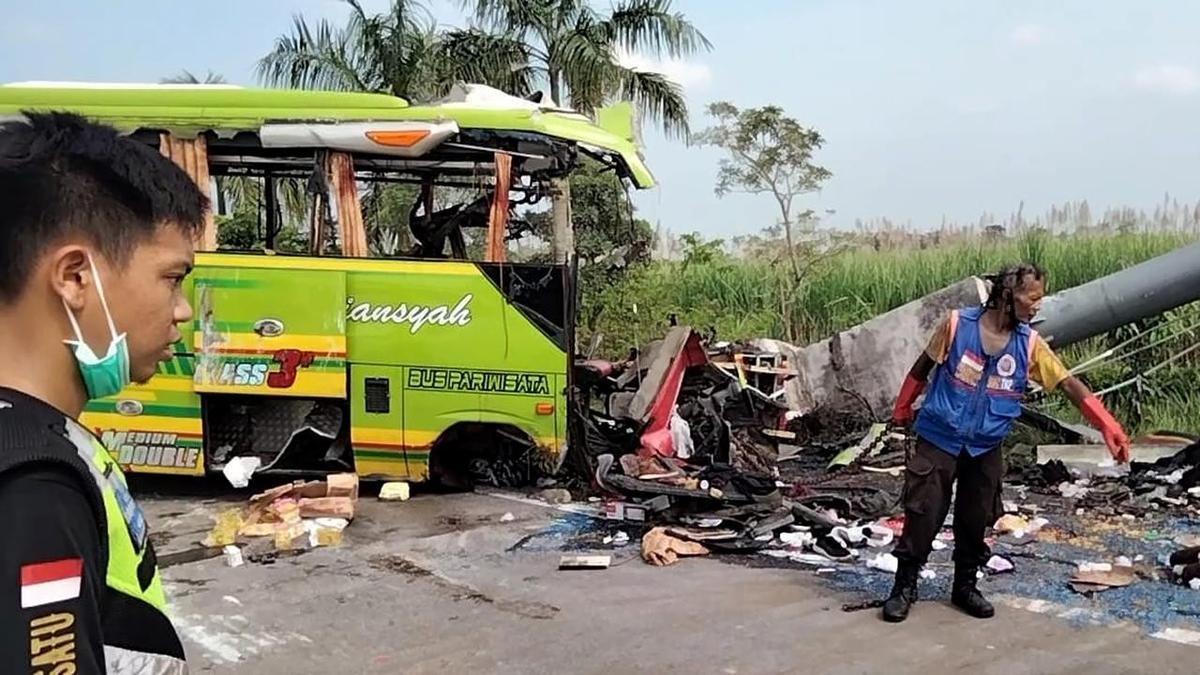 “Muitos passageiros foram arremessados pela força do impacto e ficaram presos na carroceria do ônibus”, disse Budyono.