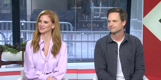 Sarah Rafferty e Patrick J. Adams assistem ‘Suits’ pela primeira vez