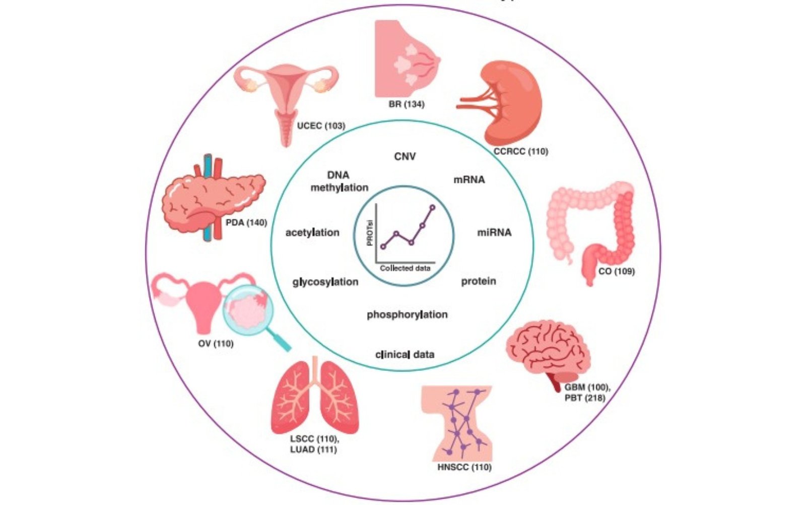 Para desenvolver o modelo, os pesquisadores analisaram a partir de proteínas 1.134 amostras para 11 tipos de câncerConsórcio de Análise Clínica de Tumor (CPTAC), com base em dados de um banco internacional de dados científicos. Os tumores que analisados incluem cabeça e pescoço, útero, seios, ovários, pulmões, rins, cérebro, cólon e pâncreas.