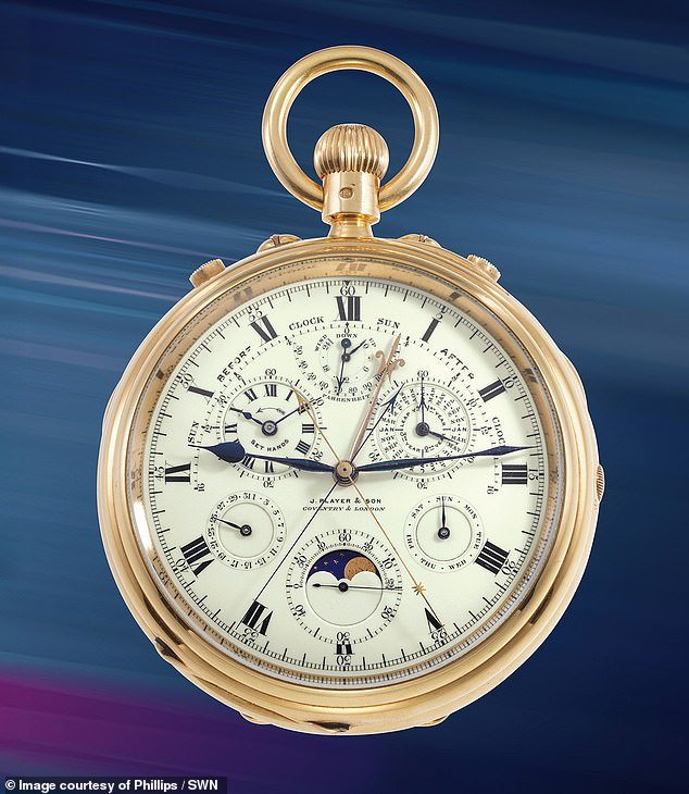 O complexo relógio, que inclui rastreamento das fases da lua, um alarme e um termômetro embutido, foi descrito como “um dos relógios de bolso vintage mais complexos já feitos do mundo”.