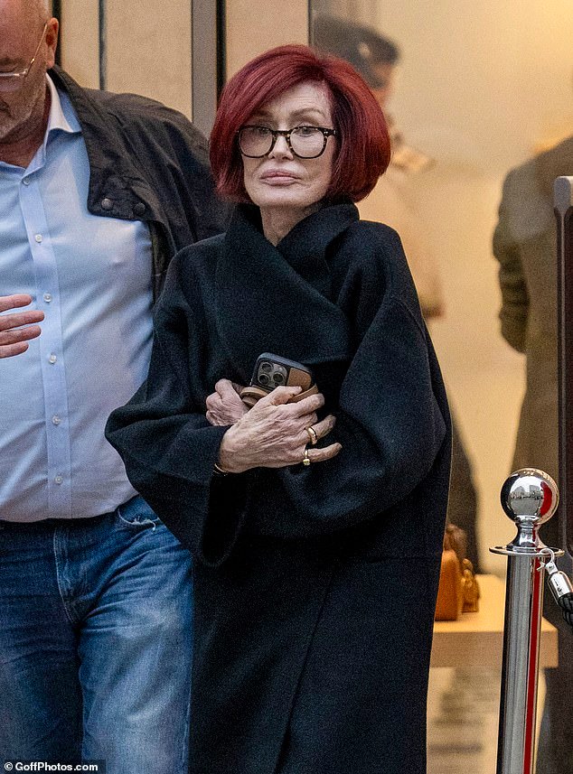 A segurança de Sharon pode ser vista carregando várias sacolas de volta para o carro enquanto ela participava de uma pequena terapia de compras um dia antes de seu aniversário – a primeira sem Ozzy.