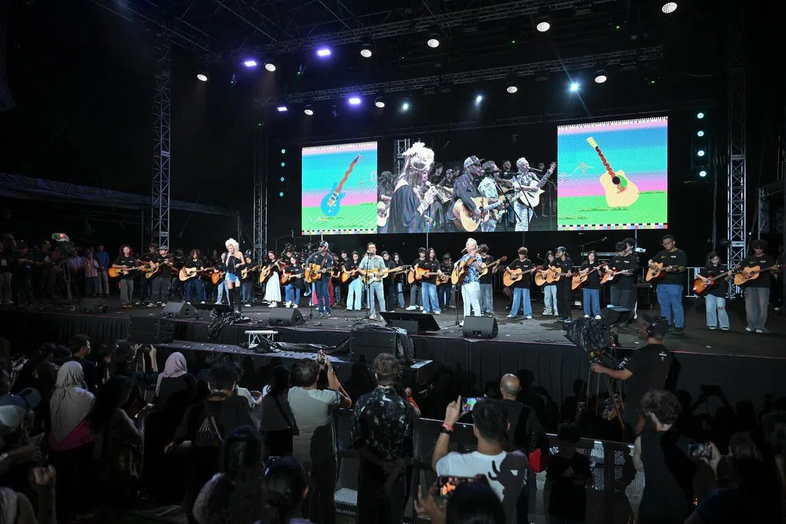 Uma das apresentações mais visualmente impressionantes foi a de 60 jovens guitarristas se apresentando no palco de Fort Canning Green.
