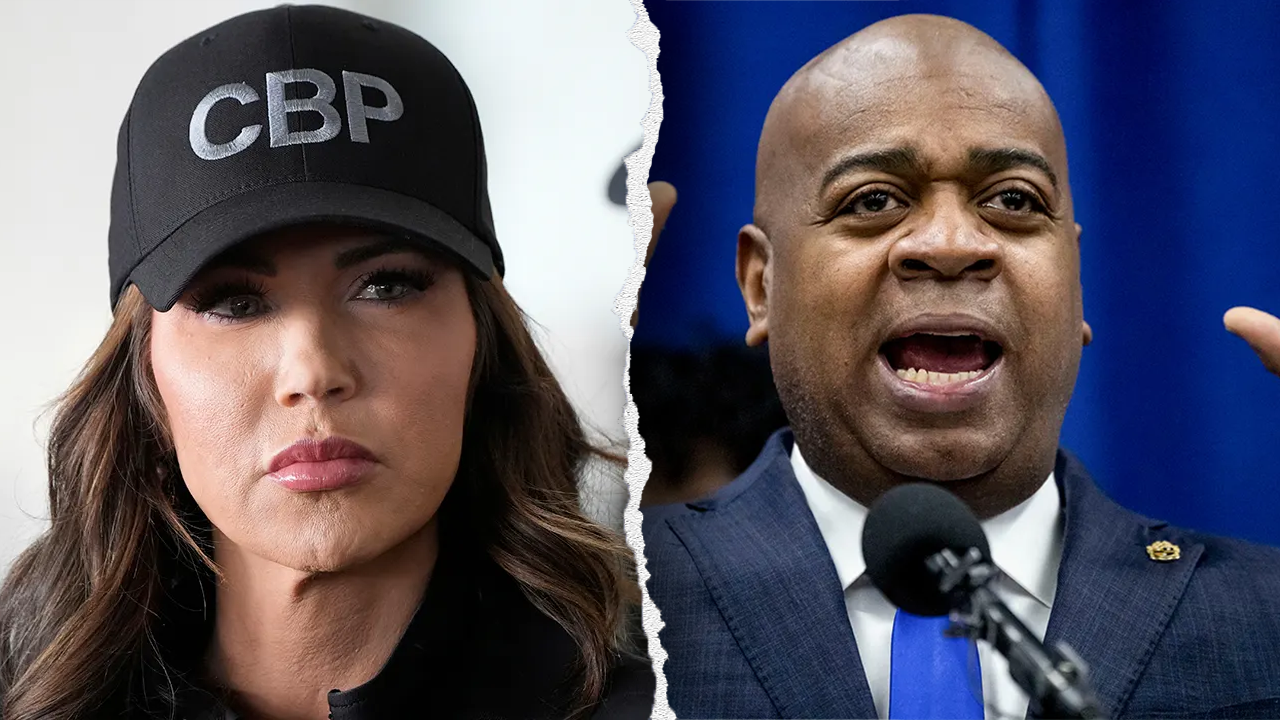 A secretária de Segurança Interna Christie Nom San Diego, em 16 de março, viu uma varredura de veículo enquanto entra em San Diego em 2025. (Alex Brandon/Pool através da Reuters)