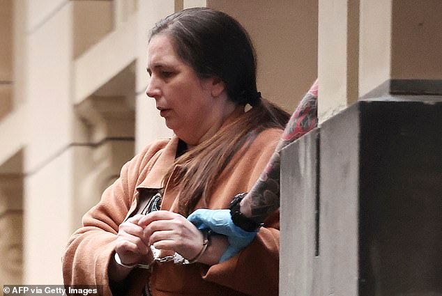 Imagem artística de Erin Patterson sendo considerada culpada em tribunal