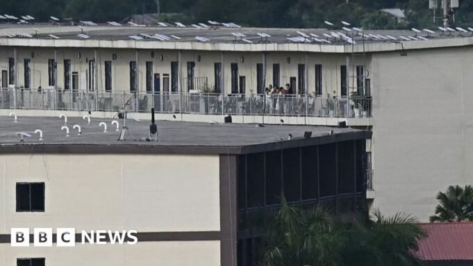 Fotografias mostraram antenas parabólicas no telhado do complexo e imagens fornecidas à BBC mostraram milhares de trabalhadores deixando o KK Park a pé.