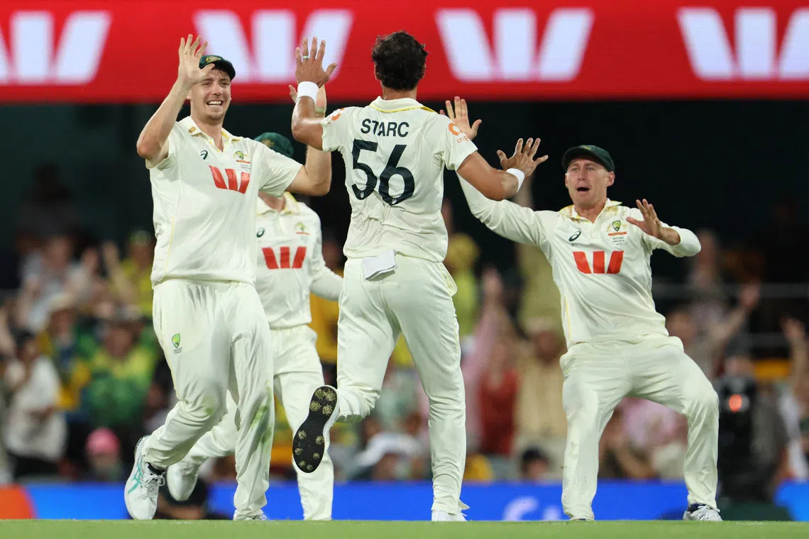 Starc acertou 13 quatros e junto com o último colocado Borland (21 não eliminado) conquistou o nono postigo do Gabba em uma parceria recorde de 75 corridas.