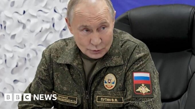 O jornal Izvestia classificou a visita do presidente Putin a um posto de comando como “um sinal para a América de que ele está pronto para discutir a Ucrânia nos termos da Rússia”.