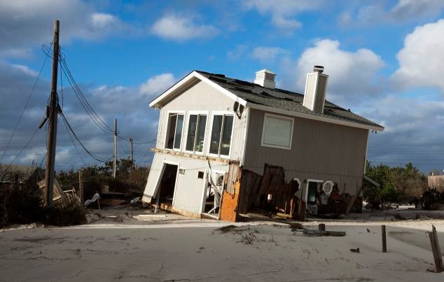 Destruição: Uma casa explodiu em sua fundação depois que a comunidade do Atlântico é lavada na comunidade do Atlântico após a superestorm Sandy.