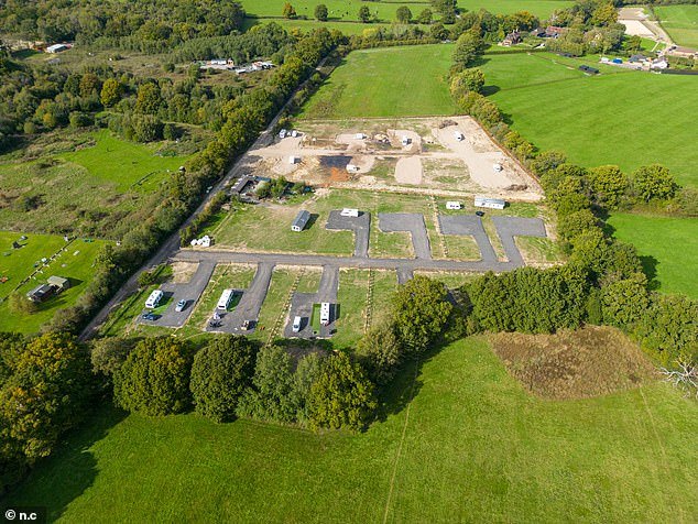 Os passageiros supostamente rasgaram o chão, que costumava ser uma área na parte do cinturão verde de Surrey (as imagens são algumas caravanas e casas móveis na pista de ossos nesta semana)