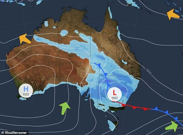 O meteorologista sênior Angus Hines, do Departamento Meteorológico do Departamento Meteorológico, disse ao Daily Mail que o sistema de baixa pressão permaneceu um ‘mecanismo principal’ para o clima úmido.