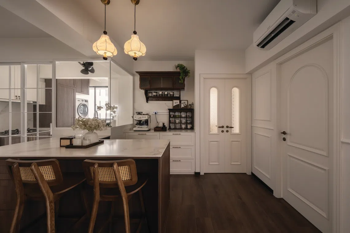 “Os proprietários sempre adoraram o visual colonial francês”, diz Joanne Yee, da Aubon Design, responsável pela reforma. Embora nenhuma informação pessoal tenha sido divulgada, os proprietários estão semi-aposentados. “Nossa loja anterior também tinha esse tema.”