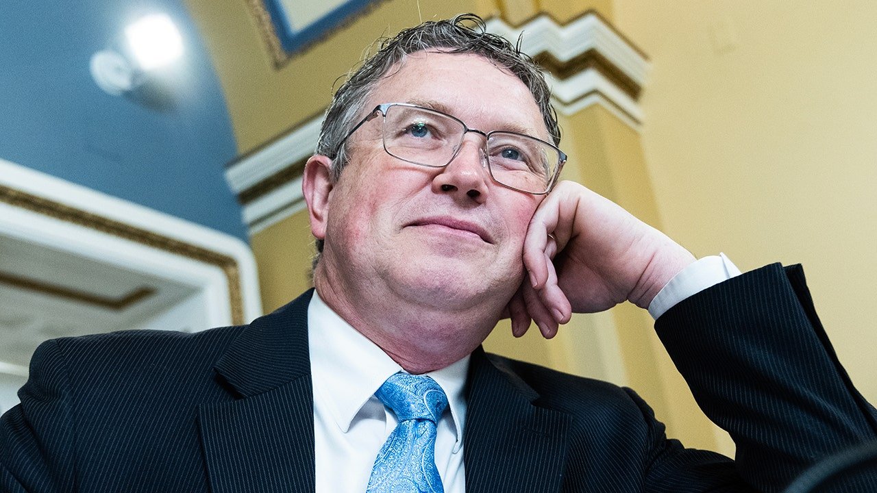 Deputado Thomas Massey, R-Ky. Na terça-feira, 11 de junho de 2024, no Capitólio dos EUA, o Comitê de Regras da Câmara se reuniu para discutir uma resolução que recomendava que o procurador-geral da Câmara, Merrick Garland, fosse considerado por desacato ao Congresso. (via Tom Williams/CQ-Roll Call, Getty Images)