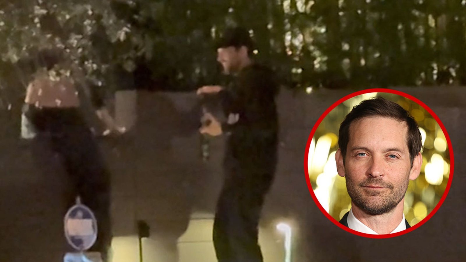 Tobey MaguireEle está prestes a pular o muro amigável de sua vizinhança… pulando a cerca de uma só vez – com o que parece ser uma bebida adulta ao lado dele.