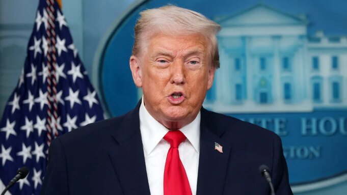 O presidente Donald Trump participa de uma coletiva de imprensa na Casa Branca em 20 de janeiro de 2026, marcando o aniversário de um ano de seu retorno ao Salão Oval. (Kevin Diest/Imagens Getty)