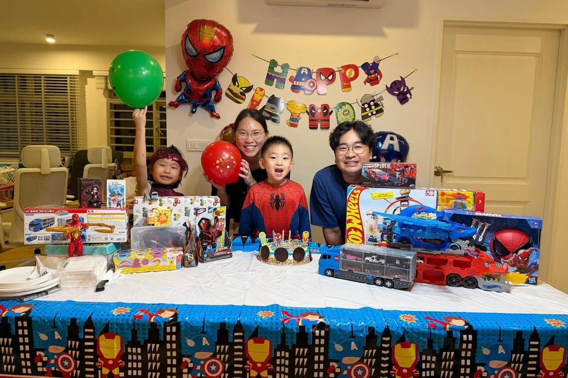 Moses Gay, regente associado da Orquestra Chinesa de Singapura, com sua filha, esposa e filho.