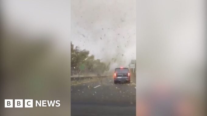 Um tornado atingiu Val-d’Oise, ao norte de Paris, na segunda-feira, derrubando guindastes de construção, danificando propriedades e arrancando árvores em seu caminho.